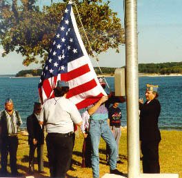 Ray and Gary begin to raise the new flag